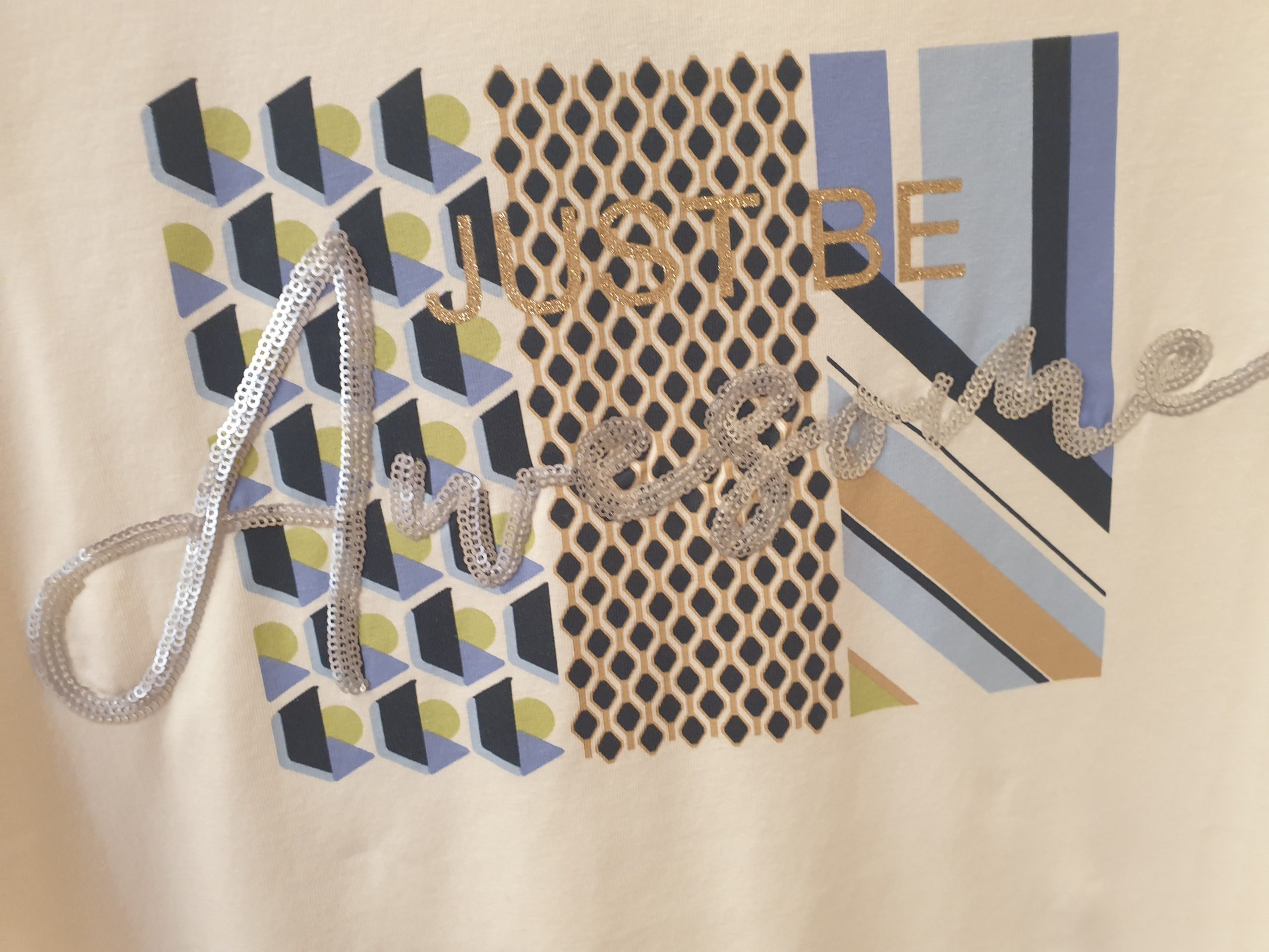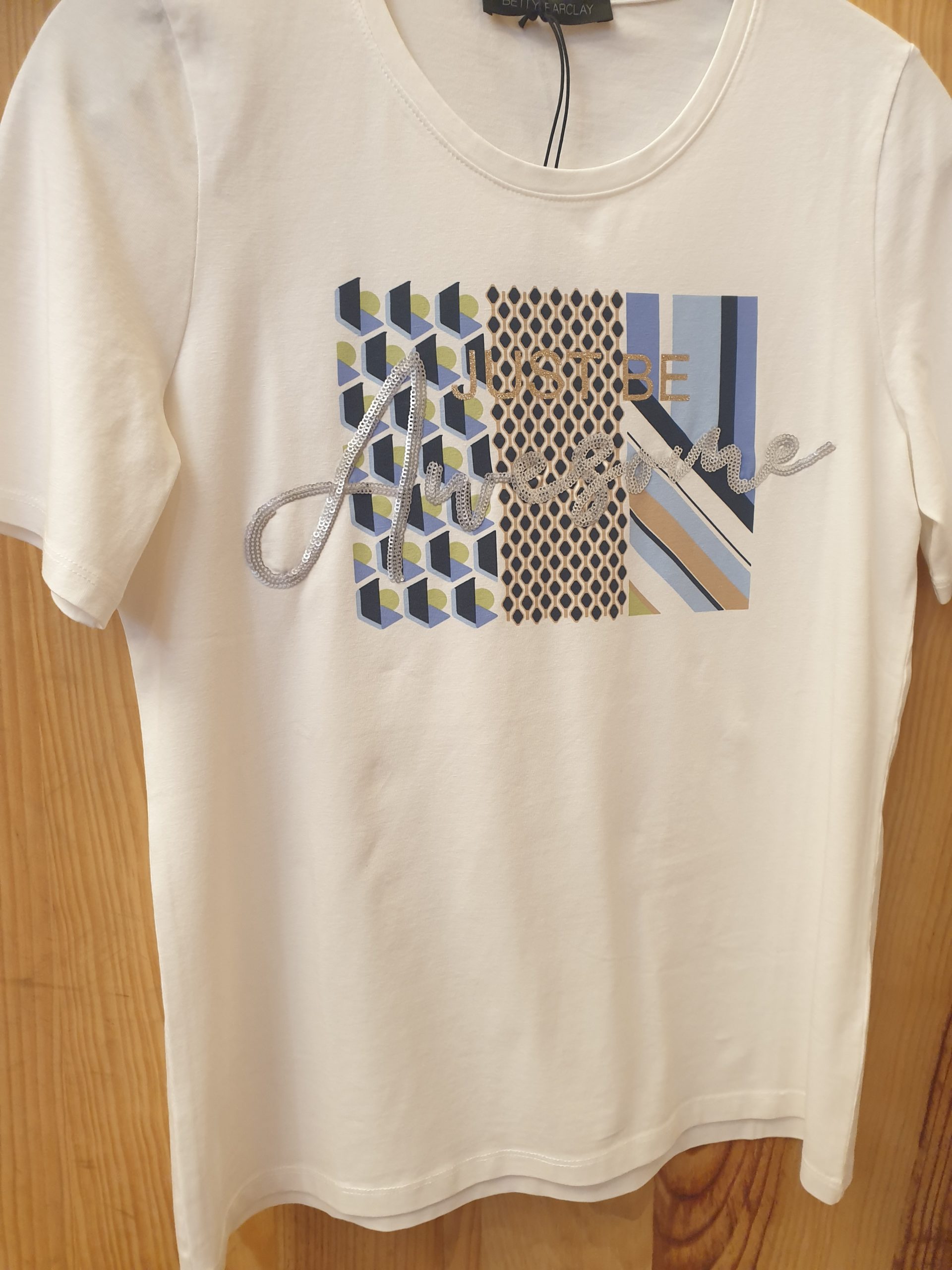 Tee-Shirt manches courtes, blanc avec impression devant, encolure ronde.