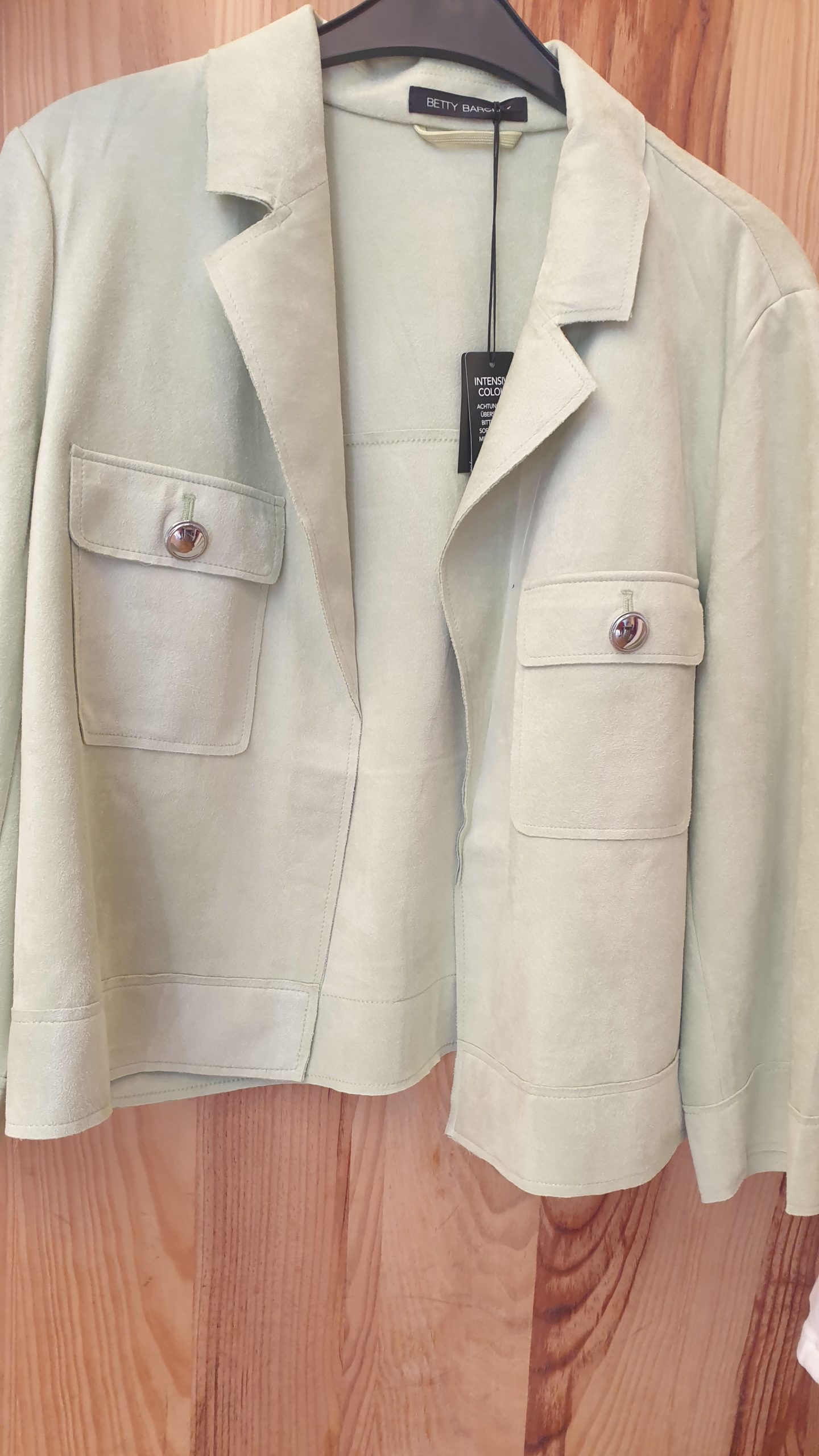 Veste courte, en suédine, avec dux poches plaquées devant, manches longues, sans fermeture
